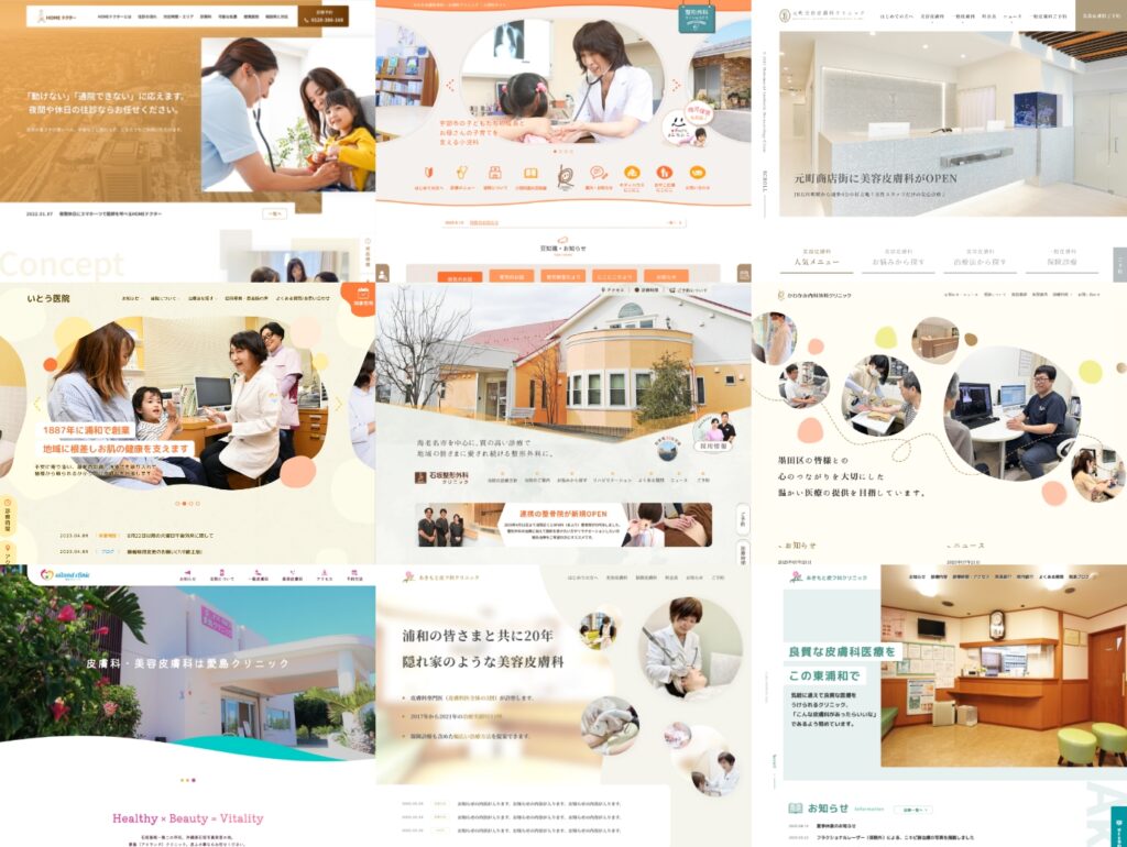 皮膚科・美容皮膚科・整形外科・内科・小児科・歯科等など様々なホームページ制作のご対応が可能です。